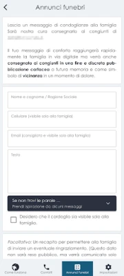 Annuncifunebri.it è un servizio di necrologi e condoglianze on–line, attivato in collaborazione con le imprese di onoranze funebri scelte dai congiunti.