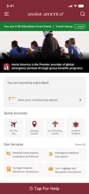 - Tap-for-Help button to call our 24/7 Operations Center - AssistAlerts: updates on emergent global situations that may impact travel - Coverage indicator to let members know when they are eligible for services - Detailed, location-specific information through our pre-trip tab - Ability to locate nearest embassy and consulate in 23 countries - Electronic copies of your ID card easily accessible in the app - Available in English, Spanish, Arabic, Mandarin, Thai, Bahasa, and French