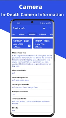 Device Info is a user-friendly Android application designed to provide complete and detailed information about your mobile device, featuring the best user interface available. This app is not only beneficial for casual users but also for developers working on kernels or Android apps. Packed with numerous features, Device Info offers extensive insights into both software and hardware aspects of your Android device, including CPU, RAM, OS, Sensors, Storage, Battery, SIM, Bluetooth, Installed Apps, System Apps, Display, Camera, Thermal, Codecs, Inputs, Mounted Storage, and CPU time-in-state.