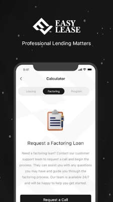 We offer Speed, Responsiveness, Consultancy, Flexibility, Differentiation and Long-Term Partnership, you will have full ownership of your leasing loan online It also provides different financing solutions such as Factoring, vendor program for those who are interested in more than just leasing.