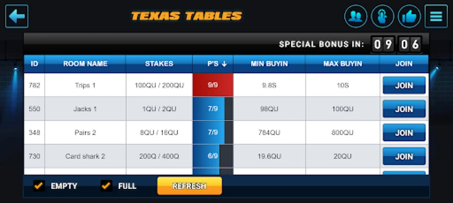- Hundreds of Live Tables. - Levels, Experience & Achievements. - Limited Edition Table Gifts. - Friends, Country & World Leaderboards. - 3D Poker Table - Multi-screen Resolutions. - Fast paced Gameplay. - 24/7 Support.