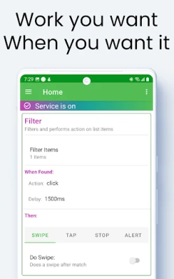 SWIPE - Stop staring intensely at your phone while waiting for work. Use the swipe feature and the app will perform gestures for you. Making it quick and easy to accept the work that you want and deserve.