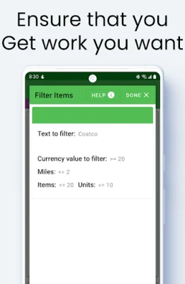 YOUR MILES - Set that maximum miles that you want to drive and Lily will only accept work with that distance or less.