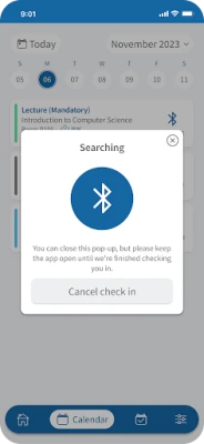 - Tap once to log attendance - View your class schedule - View analytics on your attendance - Request absence from class - Request support from your organisation - Receive class notifications (class cancellation, change of time or room)